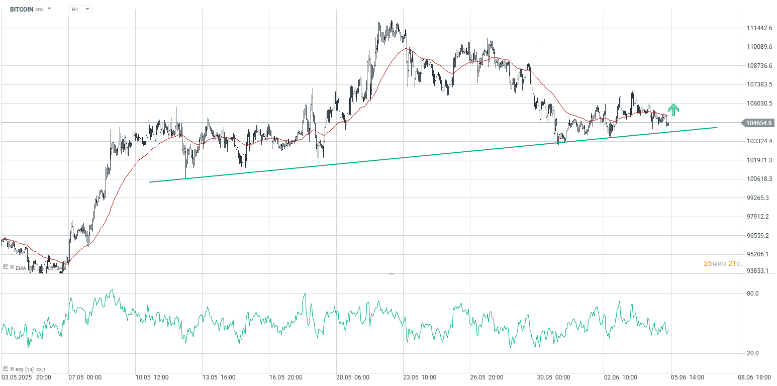 Вчора BITCOIN показав реакцію на локальну висхідну трендову лінію і готовий продовжити зростання. Закріплення ціни вище 50 ЕМА підтверджує лонгову