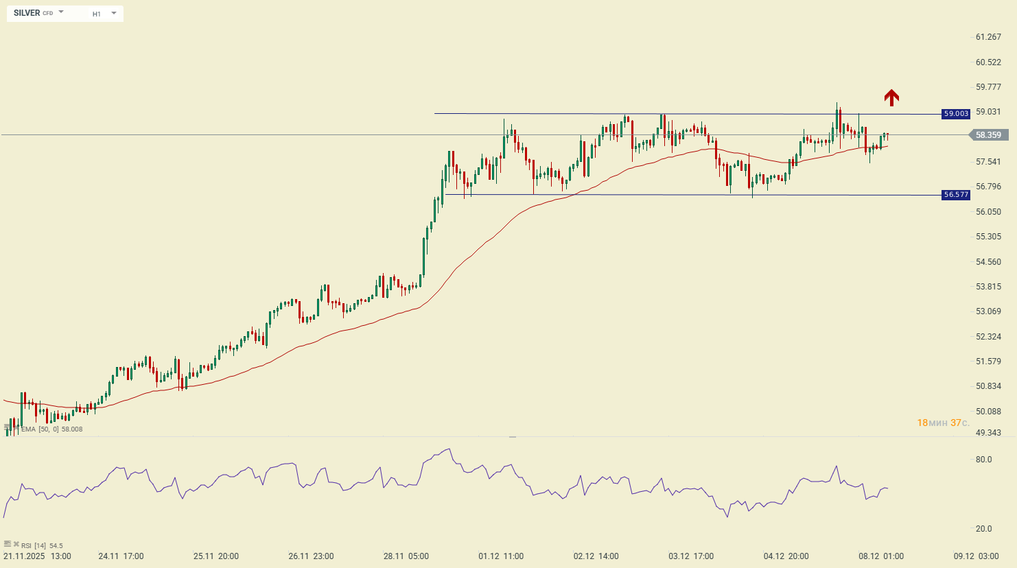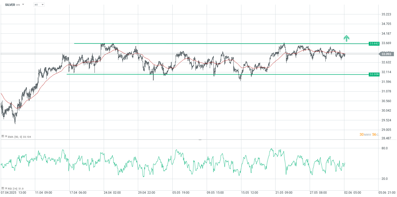 Срібло (SILVER) готове продовжити своє зростання в бік довгострокового тренду. Поточне накопичення позиції у вигляді консолідаційної фігури «прямокутник» сигналізує про перспективу