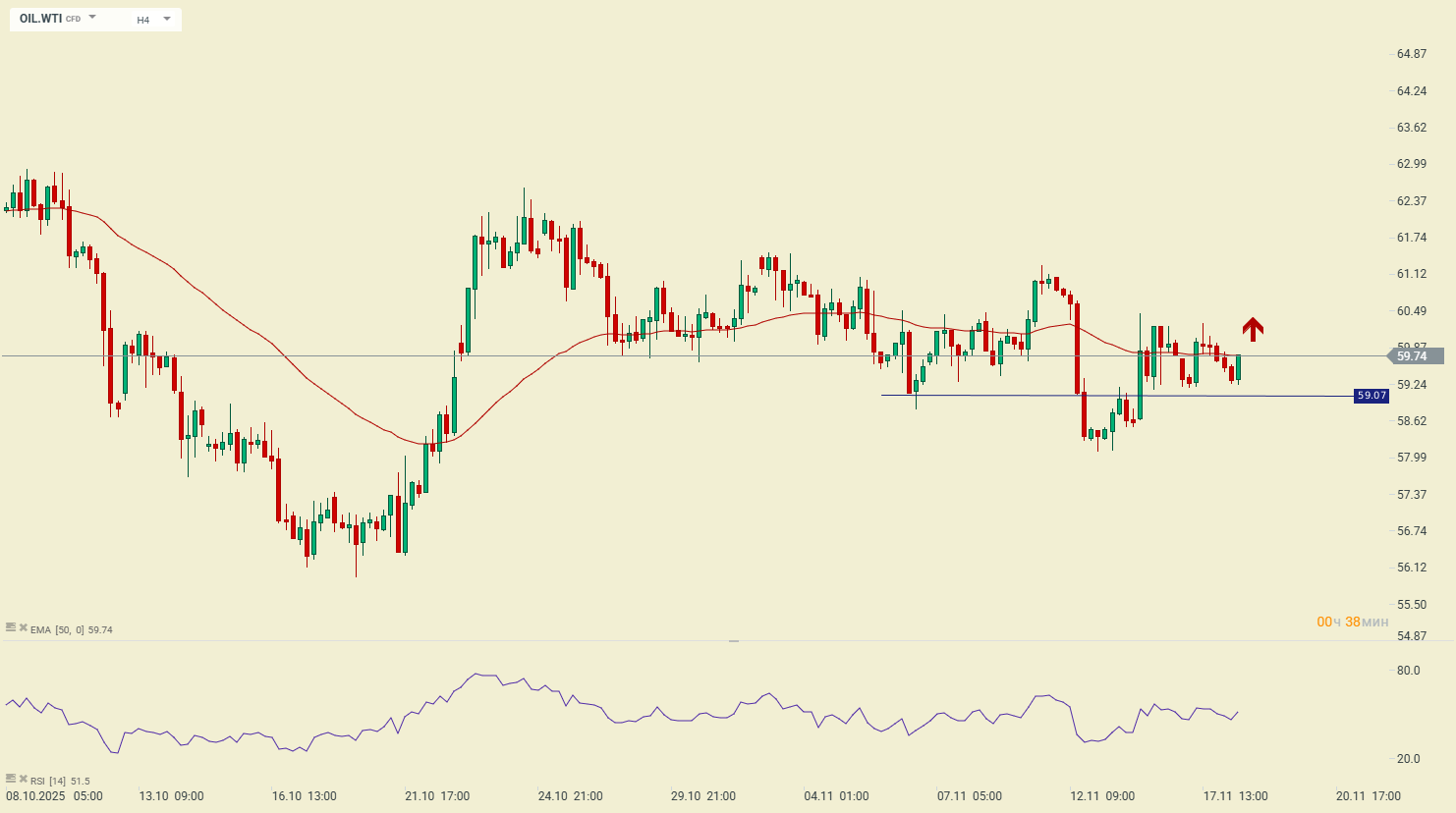 По нафті марки WTI (OIL.WTI) триває накопичення вище ключової підтримки. Втримання корекційного рівня підтримки в районі 59.00 у вигляді тривалої