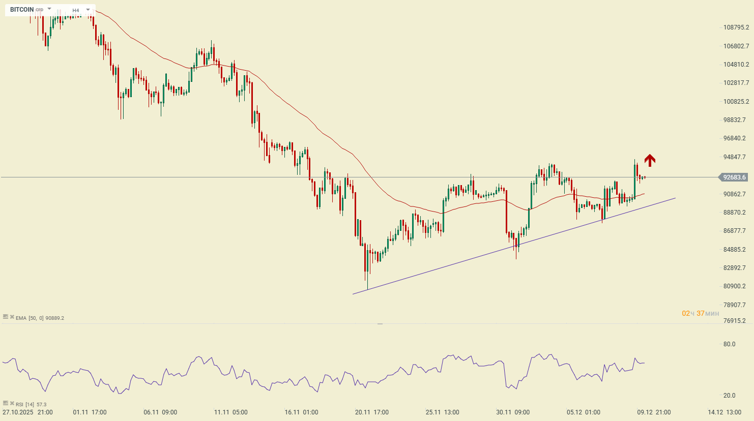 BITCOIN пробив і закріпився вище найближчого дзеркального опору в районі 89200, що підтверджує перспективу зростання. Ціна торгується вище 50 ЕМА, це