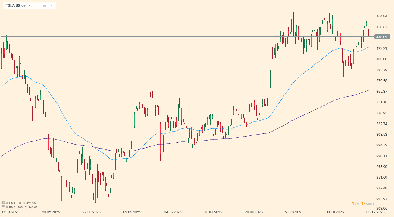 Sector: Consumer Cyclical, Industry: Auto ManufacturersPrice: 439.58, Market Cap: 1461.96 B За Q3 2025 (опубліковано 22.10.2025) загальний дохід склав $28.1 млрд,