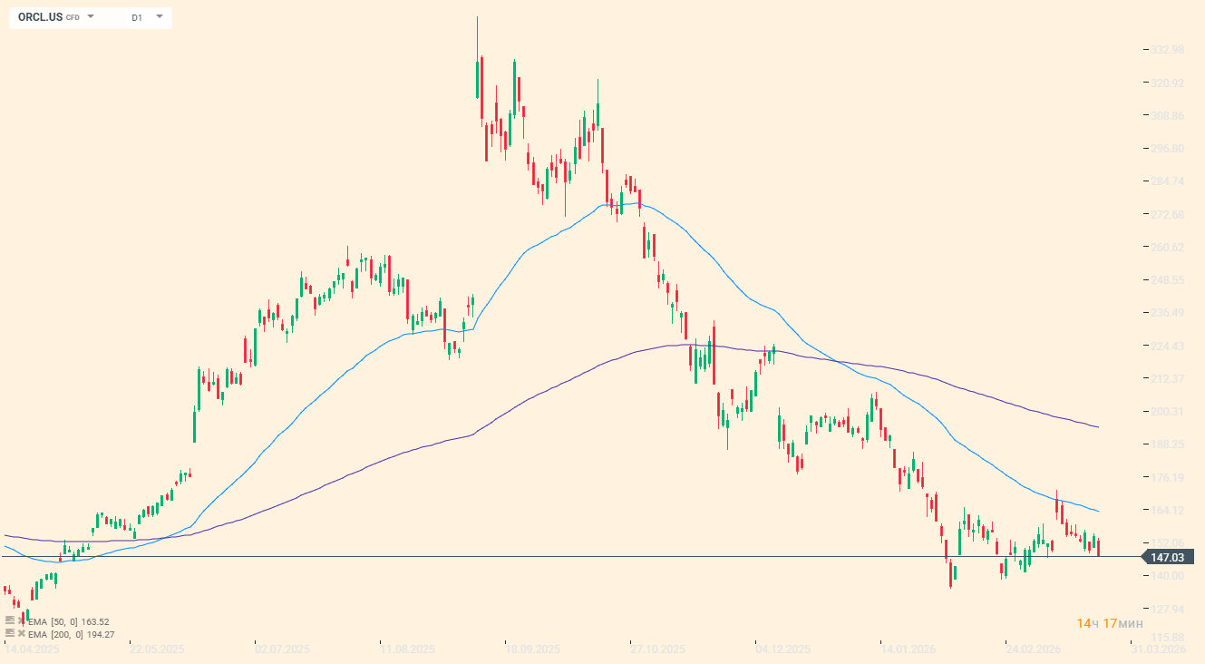 Sector: Technology Industry: Software—Infrastructure Price: 125.60 Market Cap: 348.90B Q3 FY2026 (опубліковано 10.03.2026, квартал завершився 28.02.2026) Загальний дохід Oracle склав