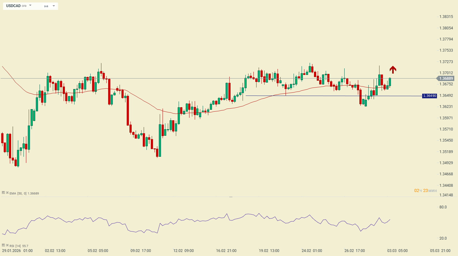 По валютній парі USDCAD покупці зуміли втримати ціну вище відкатного рівня підтримки в районі 1.3650, що вказує на набір позиції