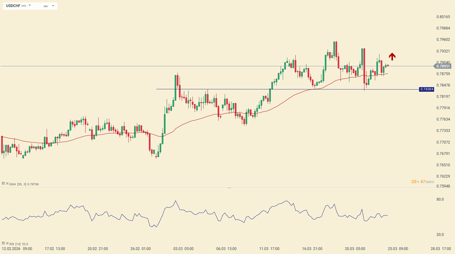 По валютній парі USDCHF триває консолідація вище найближчого дзеркального рівня підтримки 0.7840. Це вказує на те, що наразі пара перебуває