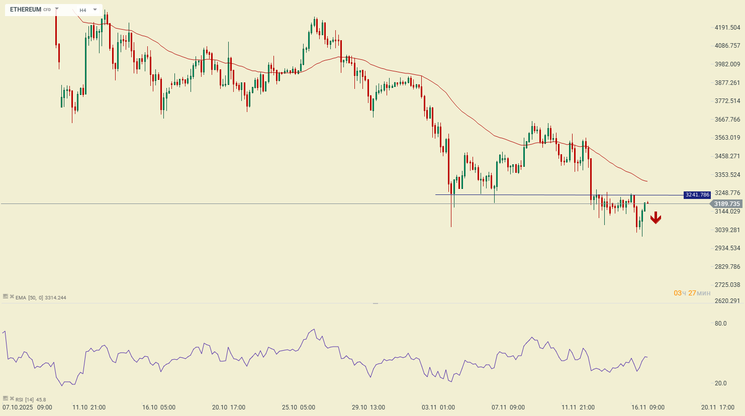 После импульсного пролива вниз криптовалюта Ethereum показала коррекционный рост до ближайшего реверсного уровня сопротивления и продолжает консолидироваться ниже него. Реакция