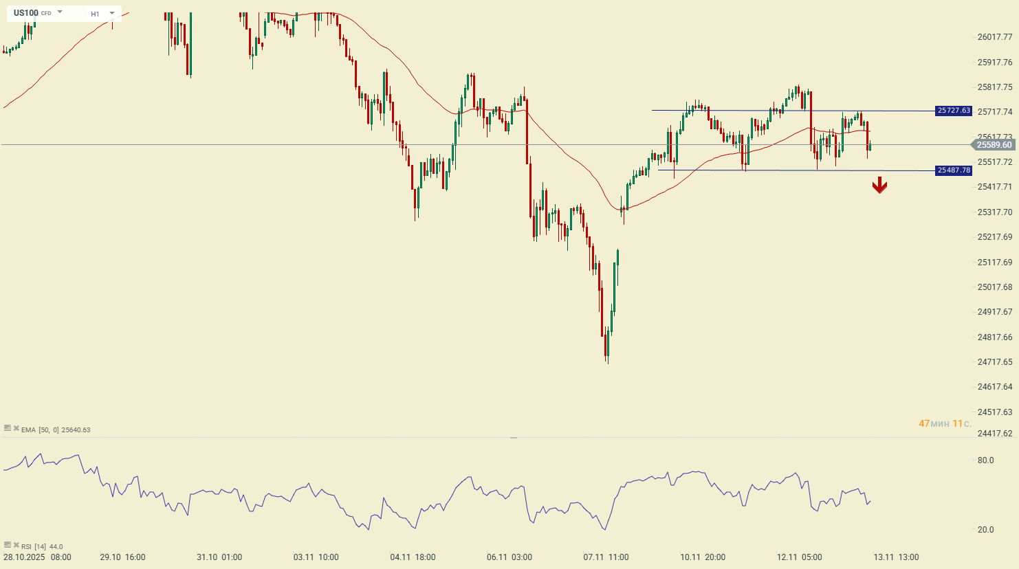 Вероятно, индекс NASDAQ (US100) готовится уйти на коррекцию вниз. Формирование фигуры технического анализа "голова и плечи" указывает на возможную кульминацию