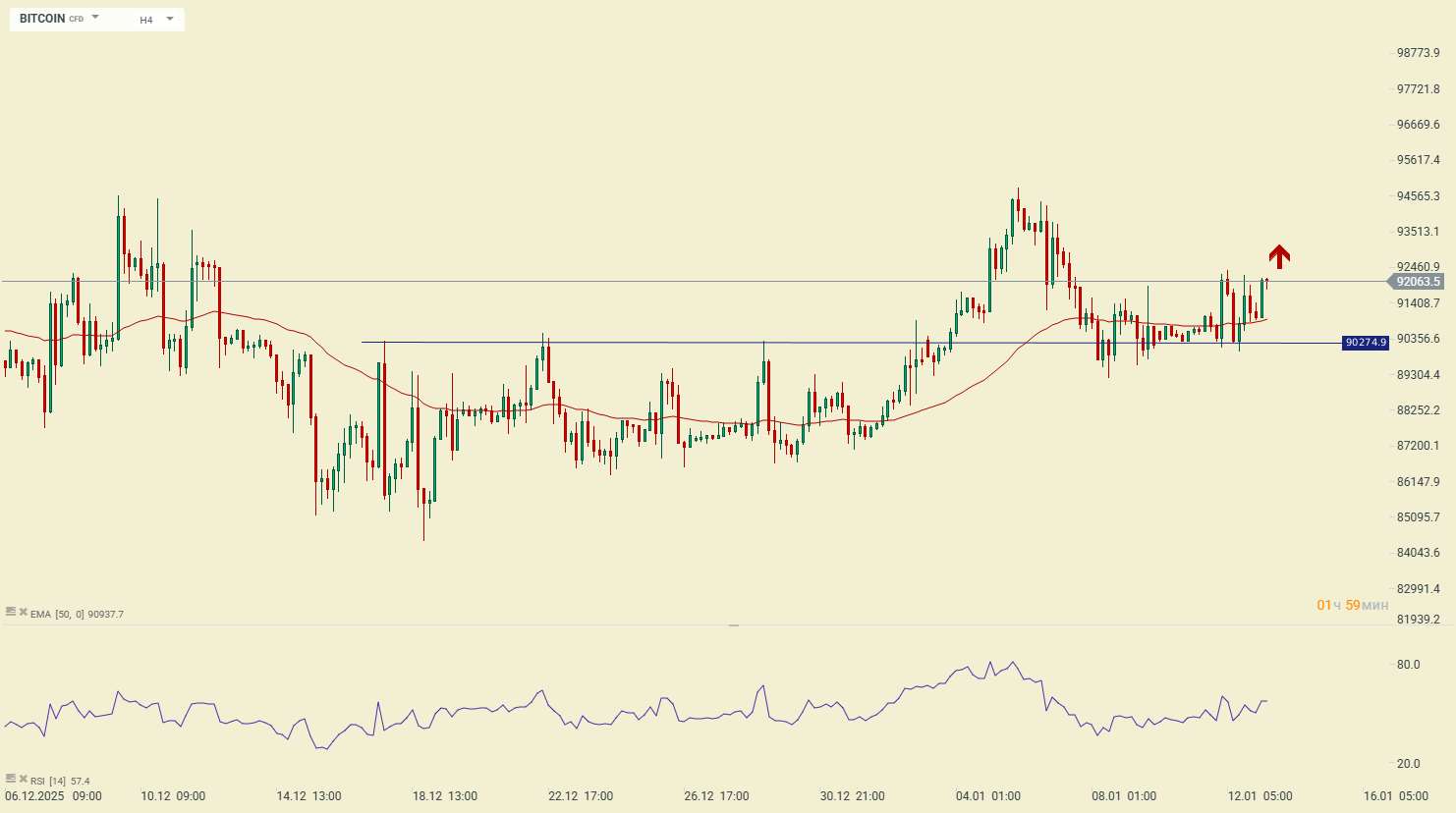 Криптовалюта BITCOIN продолжает набирать обороты для дальнейшего движения наверх. Продолжительная консолидация зеркально выше психологической отметки в районе 90К указывает на уверенный