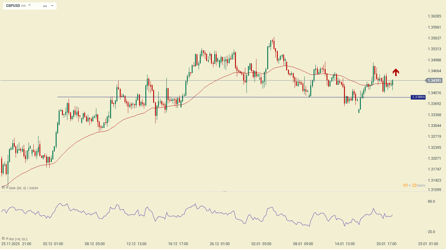 Валютная пара GBPUSD продолжает набирать позицию выше ближайшей зеркальной поддержки 1.3390. Это указывает на то, что фунт находится в зоне покупателей