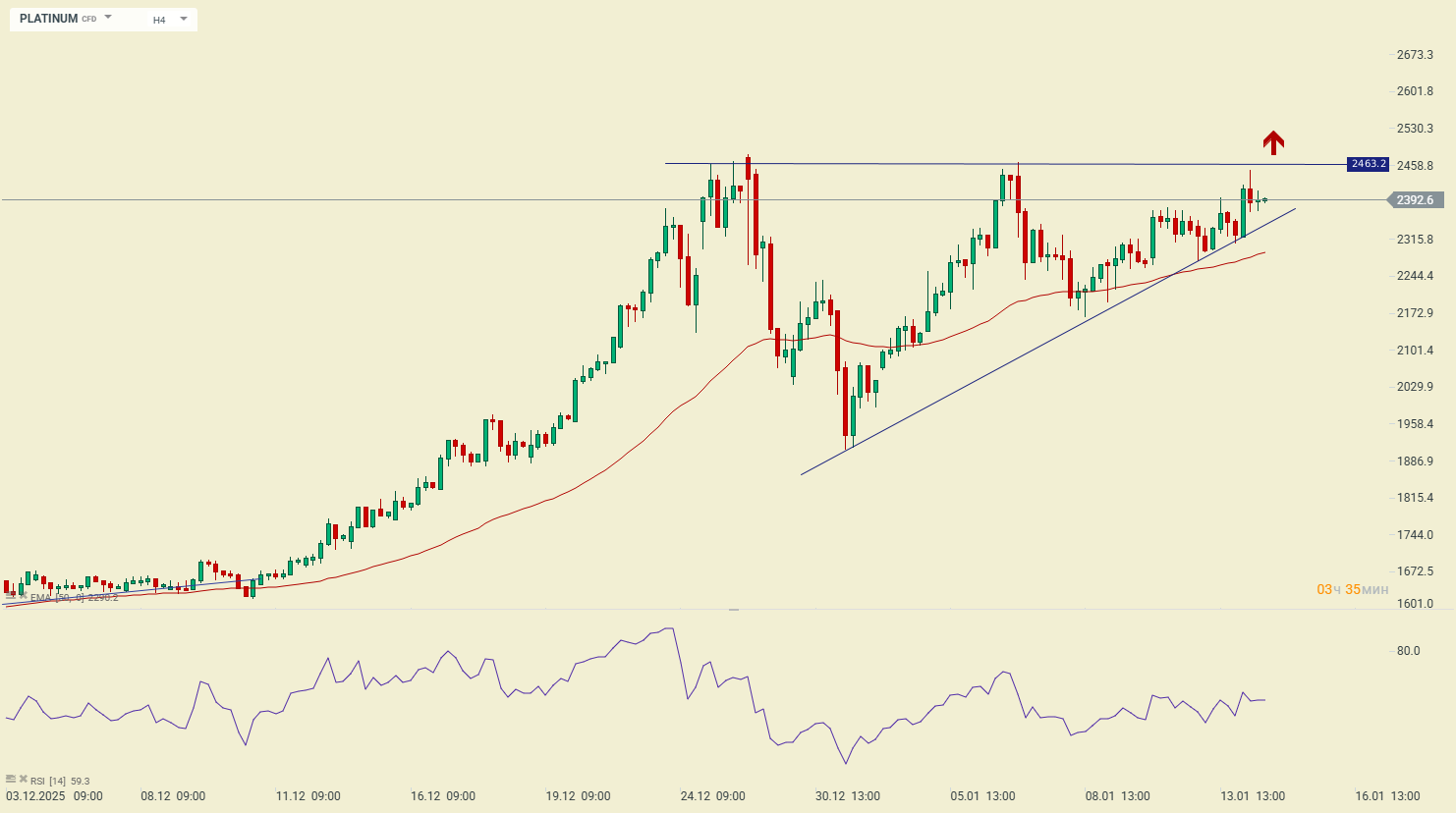 "Восходящий треугольник" по платине