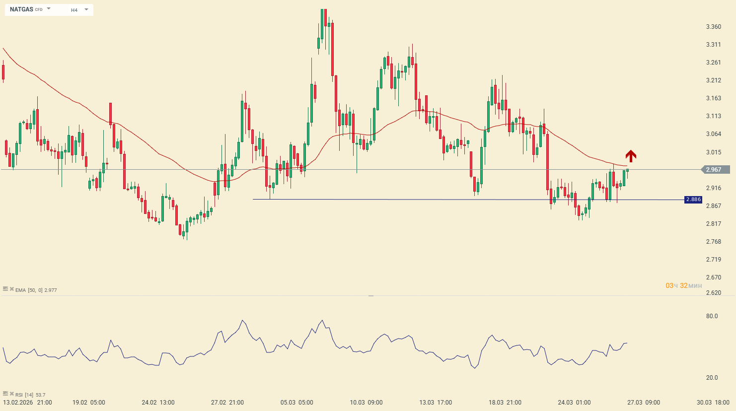 По газу NATGAS происходит борьба за ключевой уровень поддержки в районе 2.885 (минимум коррекции в рамках роста конца февраля-начала марта).