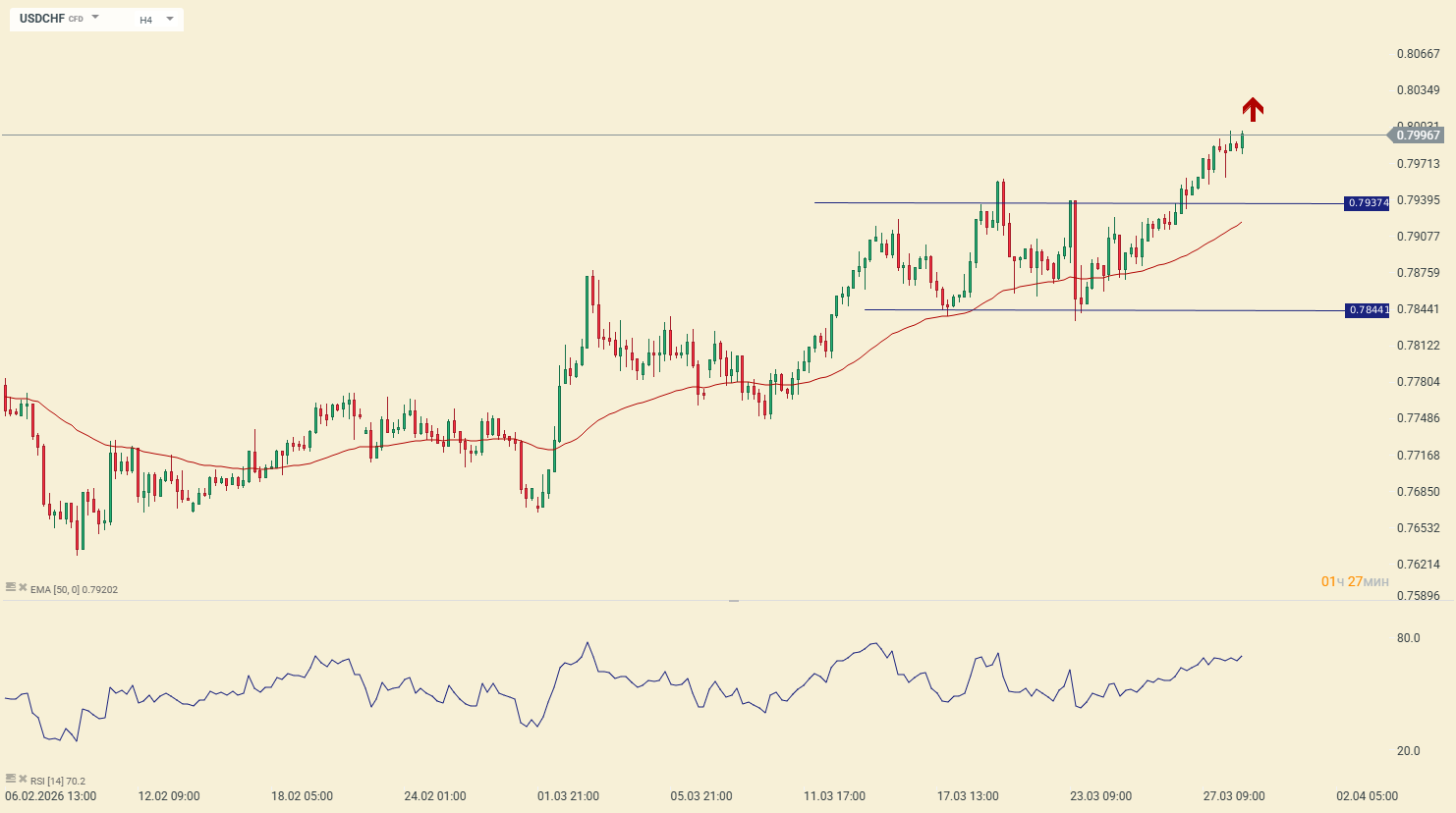 По валютной паре USDCHF продолжается консолидация выше ближайшего зеркального уровня поддержки 0.7840. Это указывает на то, что на текущий момент
