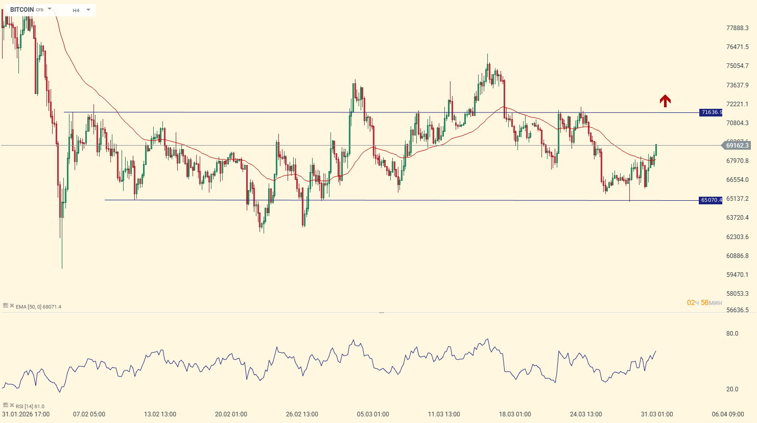 Криптовалюта BITCOIN продолжает набирать позицию для движения наверх. За последние торговые недели происходит продолжительное накопление в виде консолидационной фигуры "прямоугольник".