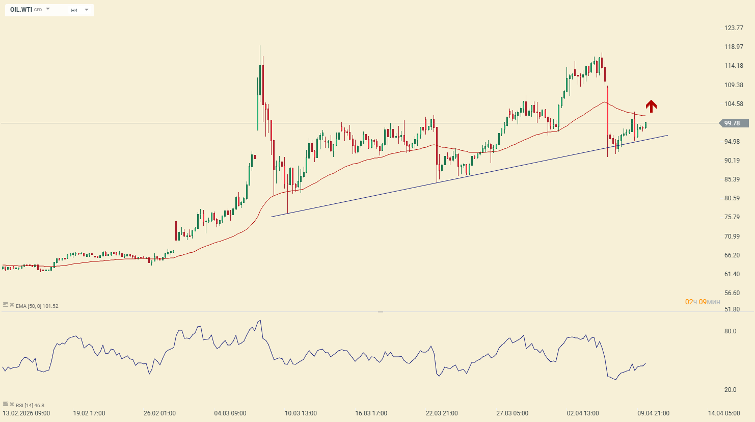 Нефть марки WTI (OIL.WTI) набирает торговую позицию для продолжения роста. Консолидация зеркально выше уровня 99.35, а также удержание цены выше 50