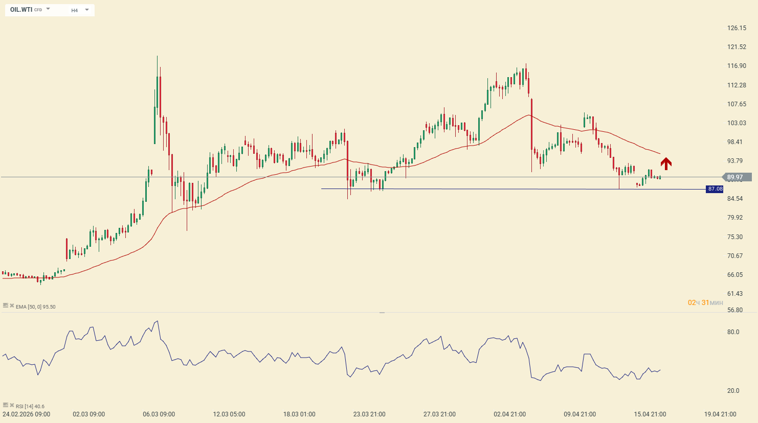 По нефти марки WTI (OIL.WTI) произошла реакция на ближайшую поддержку. Удержание цены выше поддержки 87.00 (зона коррекции в рамках предыдущего