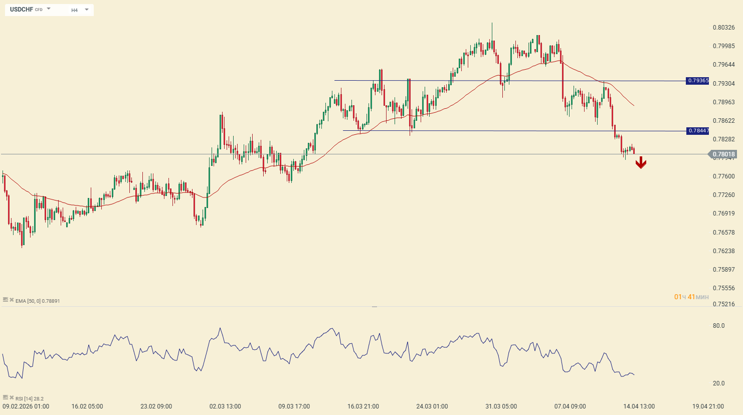 После уверенного роста валютная пара USDCHF формирует параметры для коррекции вниз. Реакция на образовавшиеся максимумы в виде фигуры технического анализа
