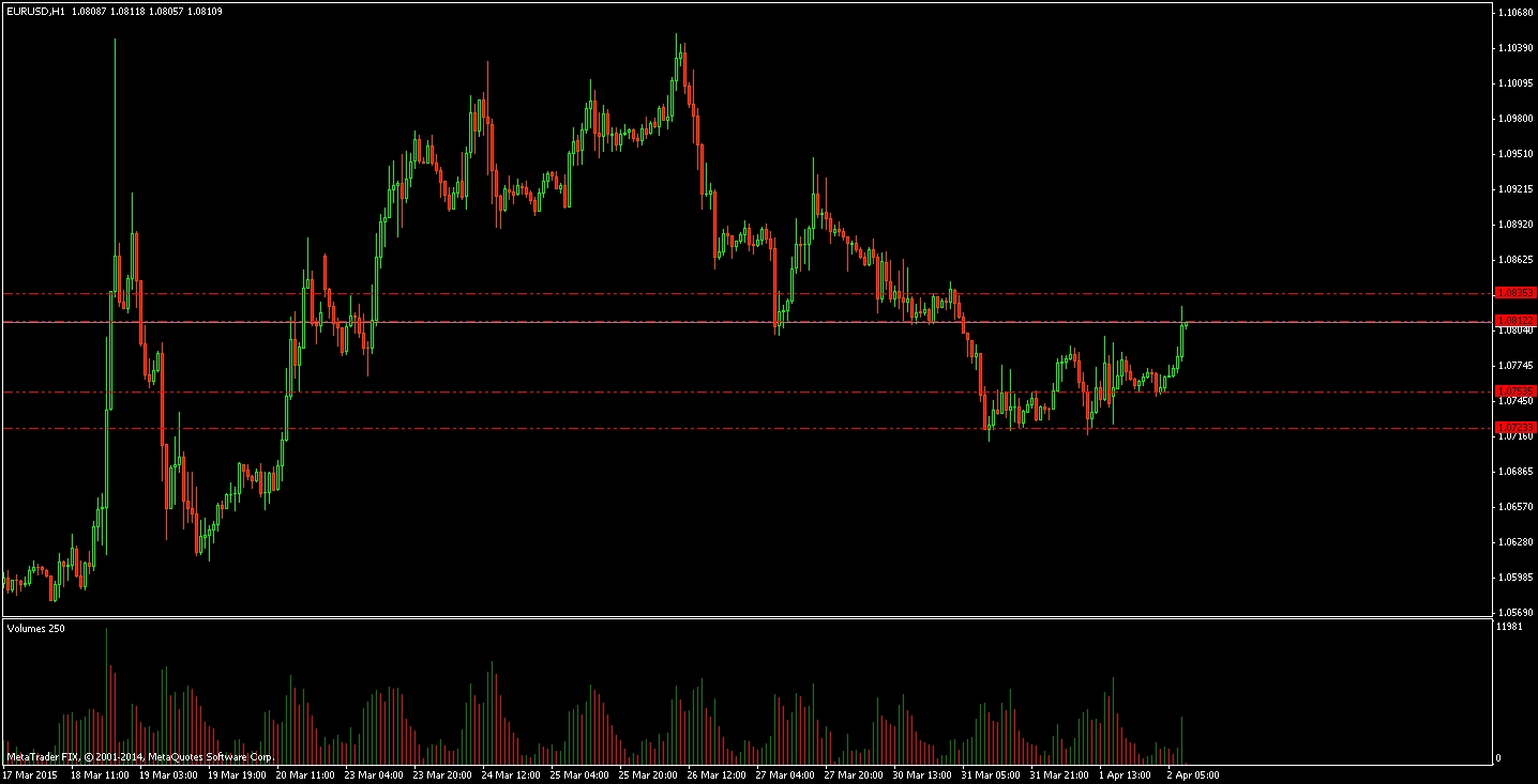 Евро торговался с понижением, даже после пересмотренного в сторону роста доклада PMI еврозоны за март. Последний Производственный индекс PMI Германии немного вырос, прибавляя к недавним обнадеживающим данным, поступившим из страны. С другой стороны отмечается сокращение 11 месяц подряд PMI производства Франции, несмотря на то что он был пересмотрен в сторону роста.