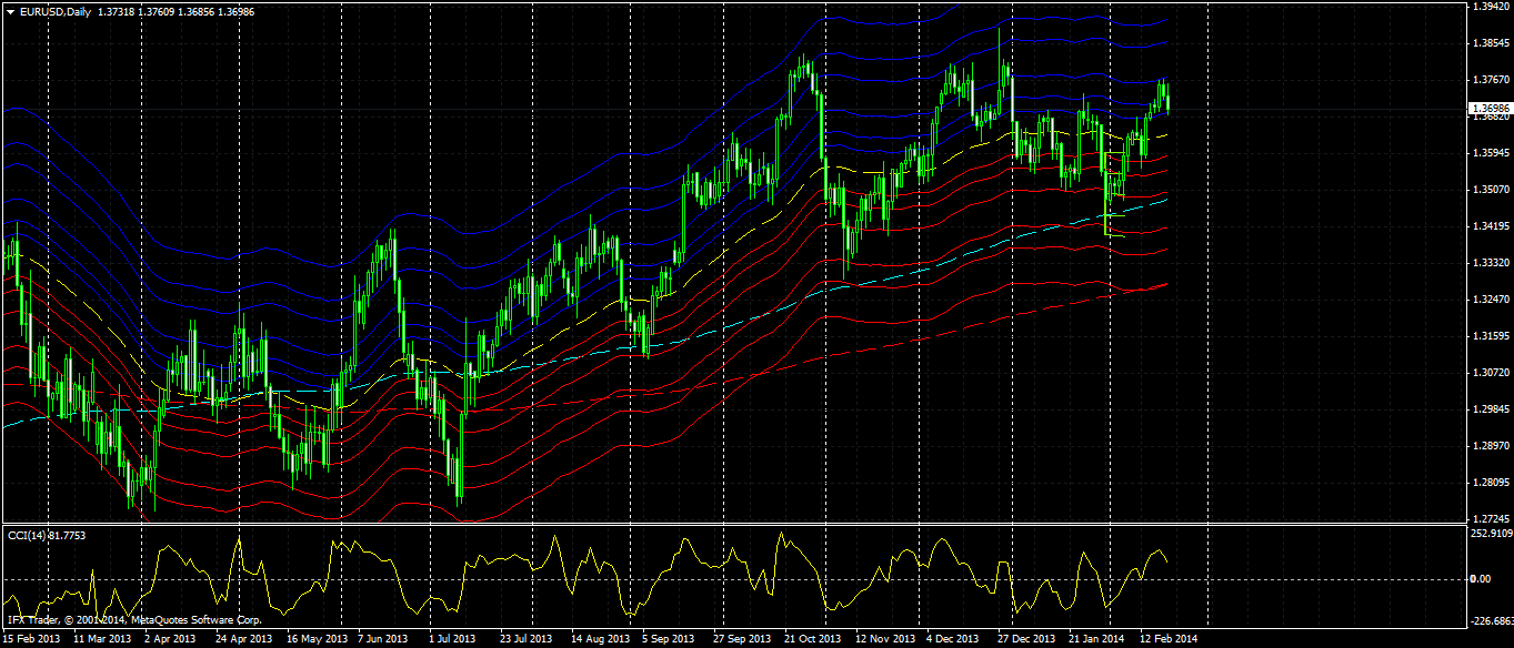 Торговое решение на 20.02.2014 это торговля, основанная на словах с выступления Йеллен, а также учитываем то, что пара EUR/USD как мы видим на дневном графике, достаточно высоко и рынок настроен больше по медмежьи. А 21.02.2014 это торговля во флэте от уровней поддержки и сопротивления.