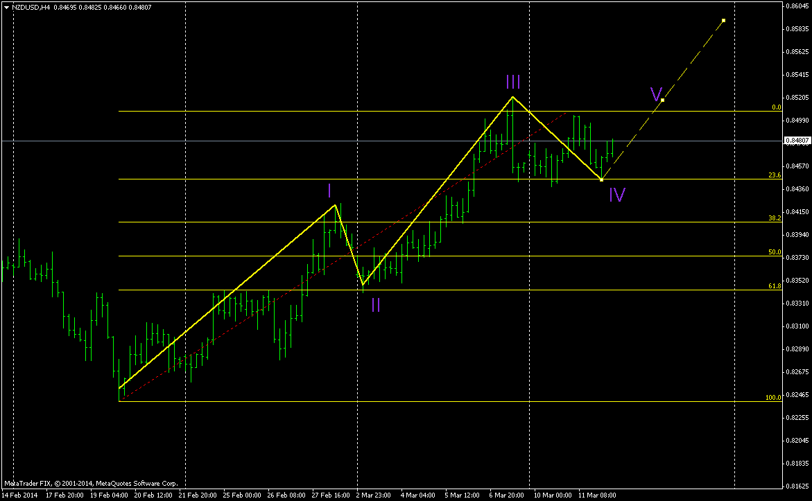 Последние 4 дня пара NZD/USD торгуется в диапазоне 70 пунктов (0.8440 – 0.8510). Учитывая, что сегодня (12.03.2014) также нет важных новостей, как по Новой Зеландии, так и по США то я предполагаю что, до конца дня данная тенденция сохранится.