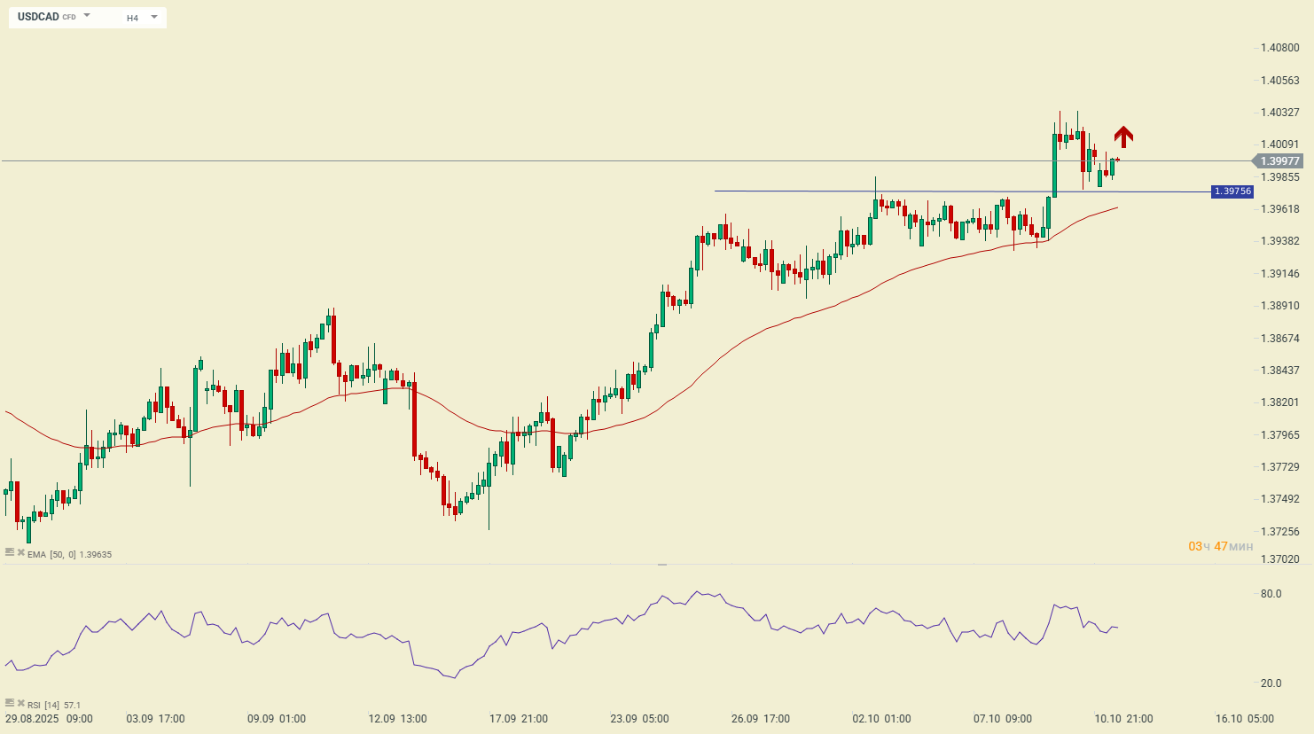 Валютная пара USDCAD набирает торговую позицию для роста в сторону долгосрочной восходящей тенденции. Пробитие и закрепление зеркально выше уровня 1.3975, а также удержание цены выше 50 EMA подтверждает лонговую перспективу пары. Исходя из этого, наша рекомендация по USDCAD: покупка выше локального зеркального уровня поддержки 1.3975, с текущих либо после небольшой коррекции с перспективой обновления максимумов текущего месяца и выше. Альтернативный сценарий: закрепление ниже поддержки 1.3975 будет означать возможность коррекции вниз.