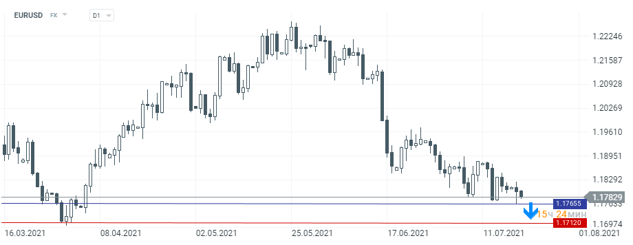 Доллар США укрепился до более чем трехмесячного пика по отношению к корзине основных валют. Сейчас за более сильным тоном доллара США скрывается явный элемент безопасного убежища. Рассматриваем дальнейшее укрепление доллара и открываем сделки на продажу после пробития 1.17655. Цель для снижения 1.17120.