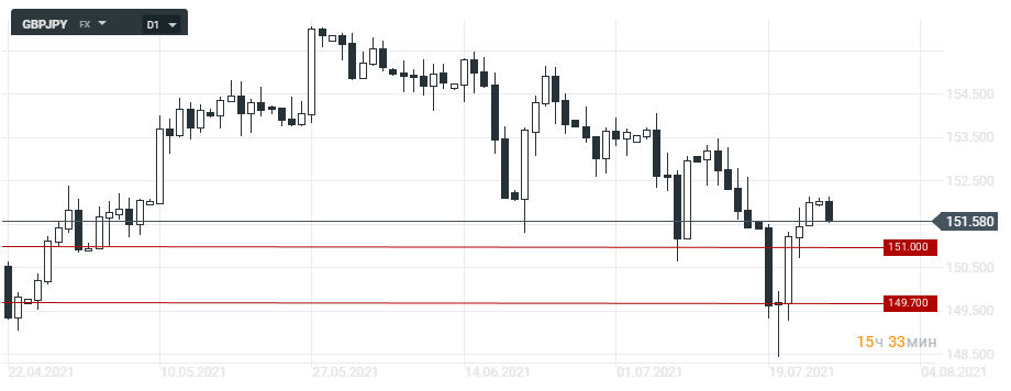 На протяжении двух месяцев японская иена укрепляется против британского фунта. Очередная коррекция была связана с заявлением Банка Англии о намерении купить новые "зеленые" облигации, которые будут выпущены правительством Великобритании в конце года. Правительство планирует выпустить не менее 15 миллиардов фунтов нового долга, для извлечения выгоды из спроса инвесторов на облигации, доходы от которых предназначены для инвестиций в охрану окружающей среды. Рассматриваем сделки на продажу с текущих цен. Цели для снижения 151.00 и 149.70.