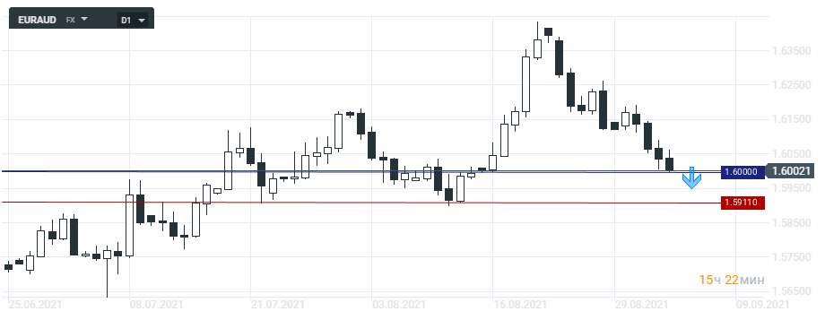 На протяжении двух недель австралийский доллар укрепляется против евро. Даже положительные положительные данные по индексу потребительских цен в еврозоне, рост ВВП Франции не помогли евро укрепится. Рассматриваем дальнейшее движение по нисходящему тренду и открываем сделки на продажу после пробития 1.6000. Цель для снижения 1.5911.