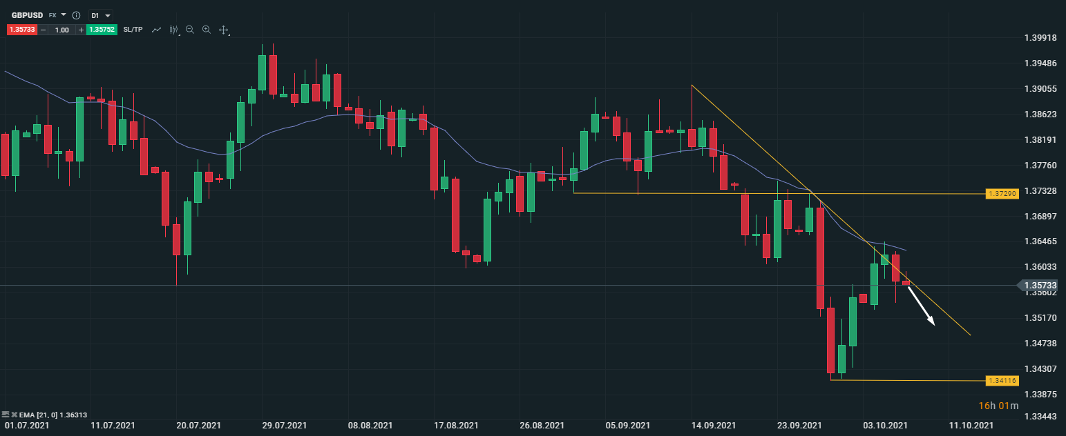 Альтернативный сценарий: при пробое уровня сопротивления 1.3650 и 1.3630 (21 средняя скользящая) можно рассматривать рост пары.