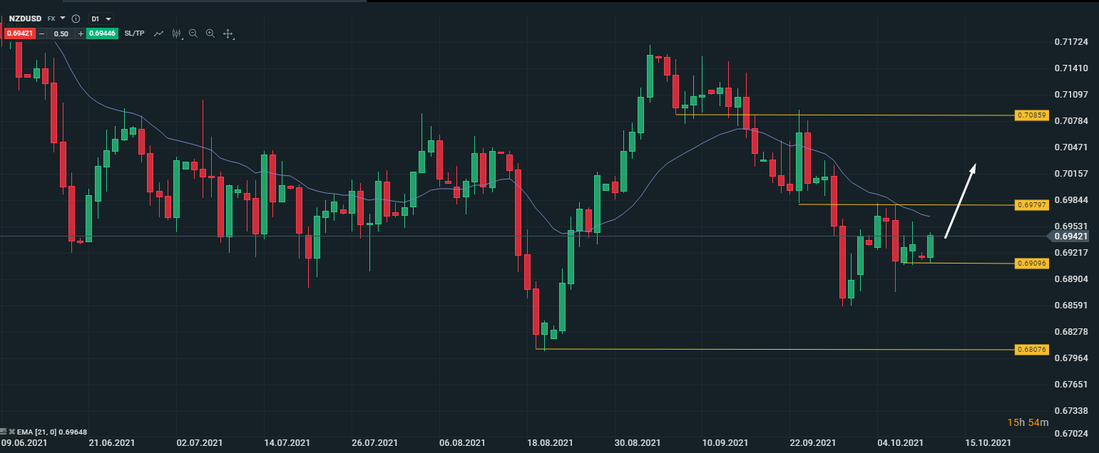 Альтернативный сценарий: при пробое уровня поддержки 0.6909 можно рассматривать снижение пары в район 0.6859.