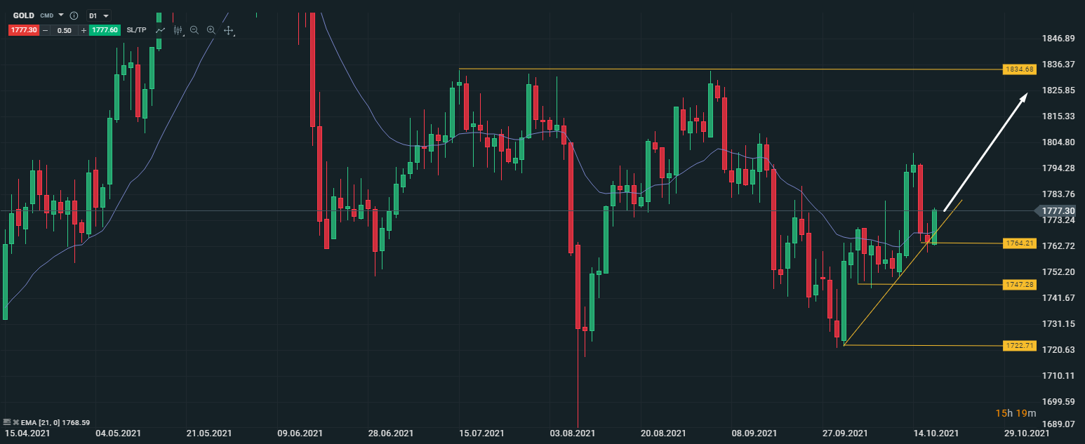 Исходя из этого, наша рекомендация по GOLD: покупка выше уровня 1764 с целью 1834.