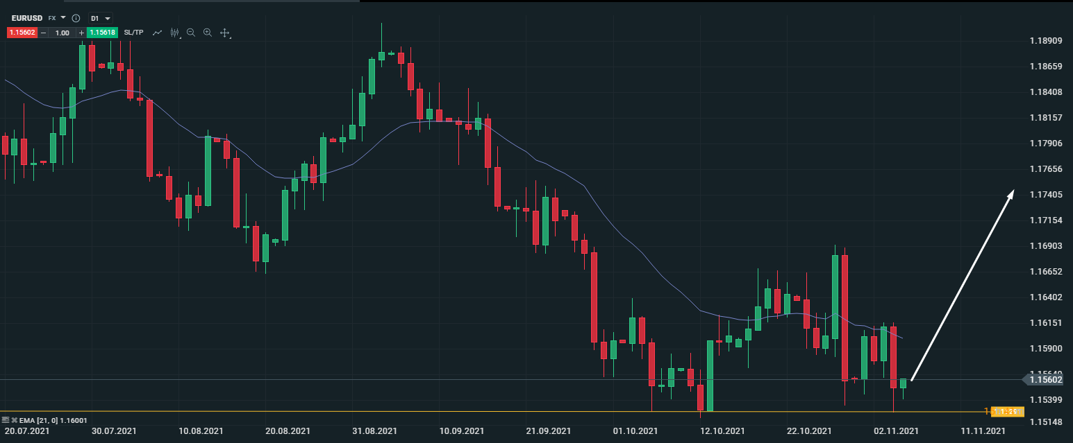 Техническая картина по EUR/USD. Быки вчера смогли удержать ключевой уровень поддержки 1.1525, это сигнализирует о силе покупателей. О дальнейшем росте пары также говорит нам импульс наверх, который образовался в прошлом месяце.