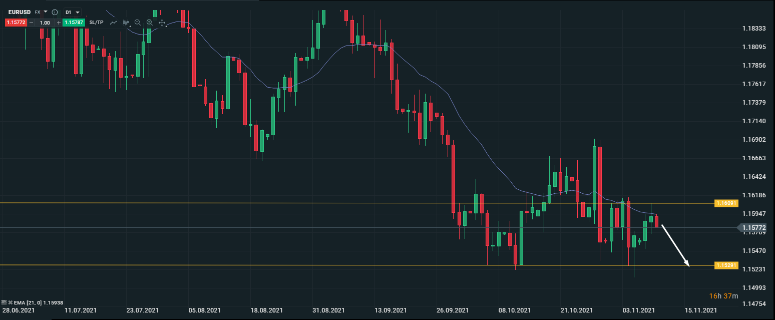 Техническая картина по EUR/USD. Валютная пара торгуется ниже 21 средней скользящей (1,1600) и ниже откатного уровня 1.1609, что дает нам основание говорить о силе медведей. Если медведи сегодня удержат откатный уровень сопротивления 1,1609, это будет сигнализировать о дальнейшем снижении в сторону нисходящего тренда.