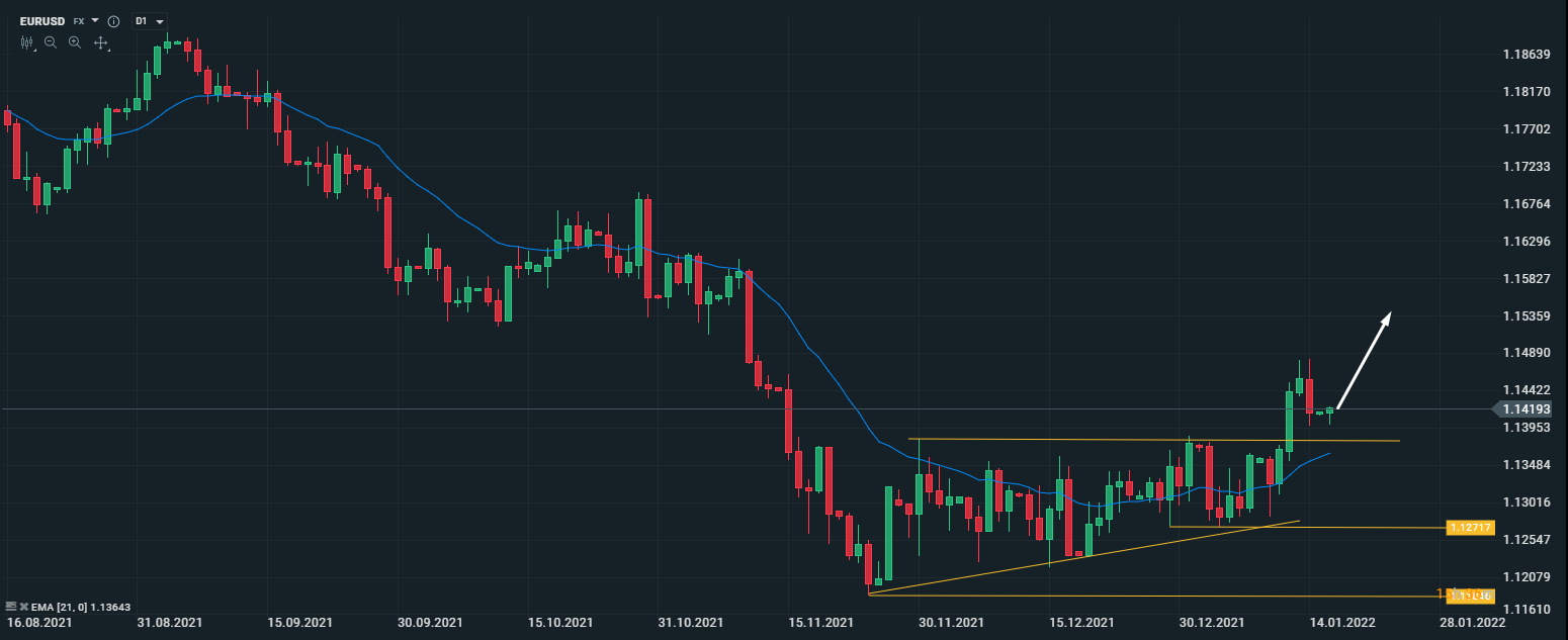 Техническая картина по EUR/USD. Покупатели ранее пробили и закрепились выше ключевого уровня сопротивления 1.1385 что сигнализирует о дальнейших покупках.