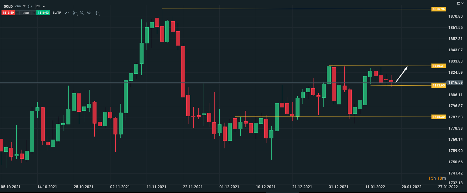 Техническая картина по GOLD. Быки нашли локальную поддержку на откатном уровне 1814 что сигнализирует о возможном росте.