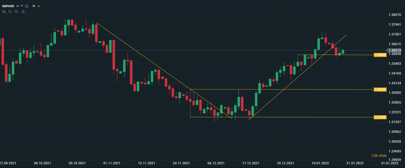 Альтернативный сценарий: при закрытии дневной свечи ниже 1,3600 возможно рассматривать шорт или в моменте ловить ложный пробой лимитом ниже 1,3600.