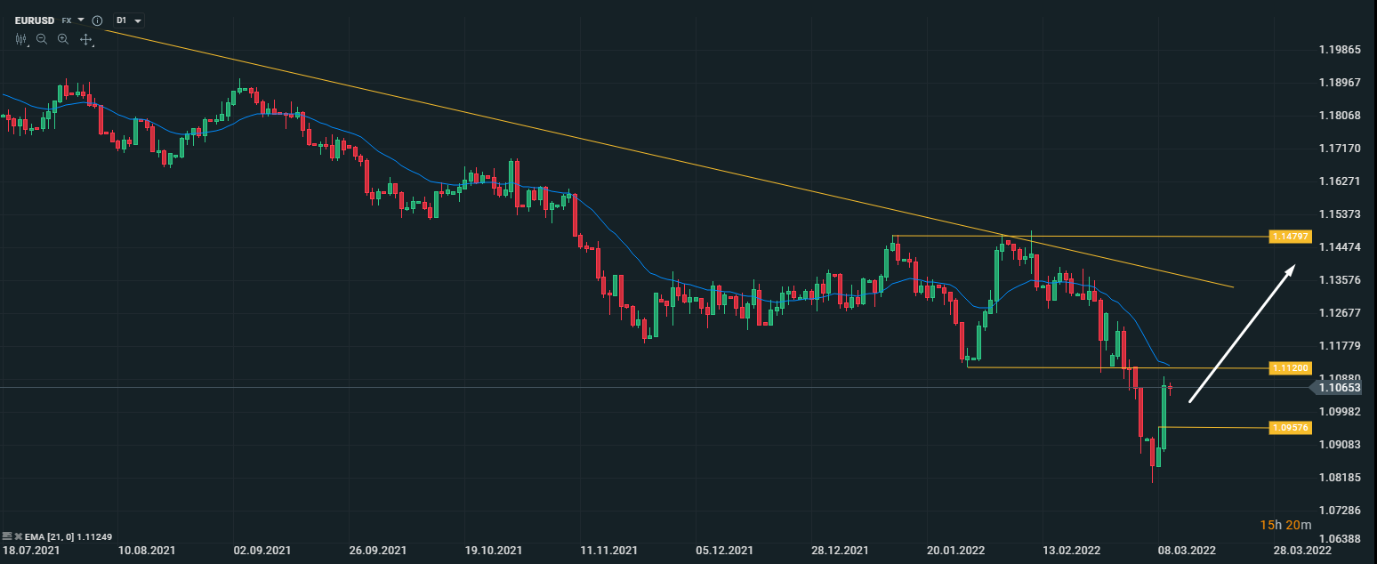 Исходя из этого, наша рекомендация по EUR/USD: спекулятивно покупать евро выше 1.0960 с целью 1.1500.