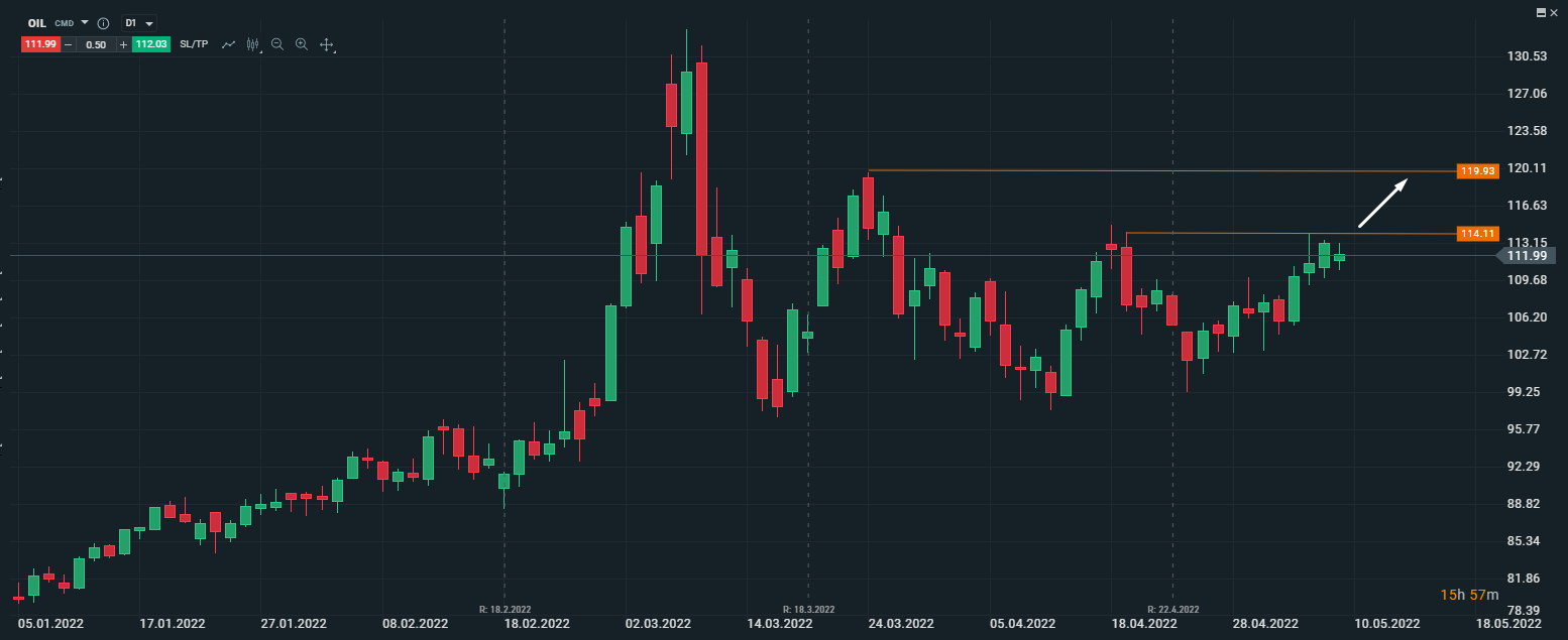 Исходя из этого, наша рекомендация по Brent (OIL): покупки выше уровня 114.25 с целью 120.