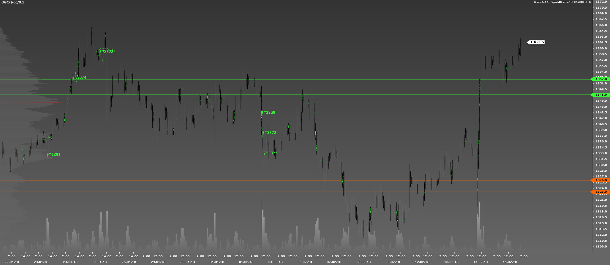 Слабые фундаментальные данные из США значительно ослабили доллар на текущей неделе. В результате мы наблюдали значительное укрепление котировок золота (цена выросла более чем на 3%). Ключевые объемные уровни по данному активу находятся в диапазоне 1326,0 – 1323,0 (уровень импульсных рыночных покупок) и ценовом диапазоне поддержки 1352,0 – 1348,0 (уровень контроля покупателей).