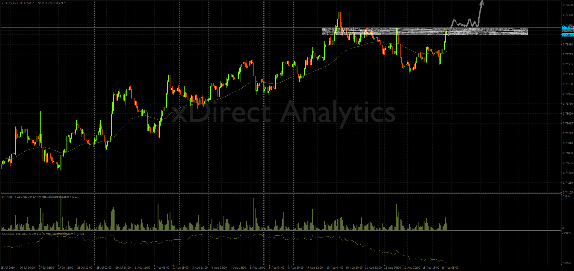 В рамках данного глобального роста был сформирован ключевой уровень сопротивления 0,7725 – 0,7705, пробой которого мы и будем торговать.