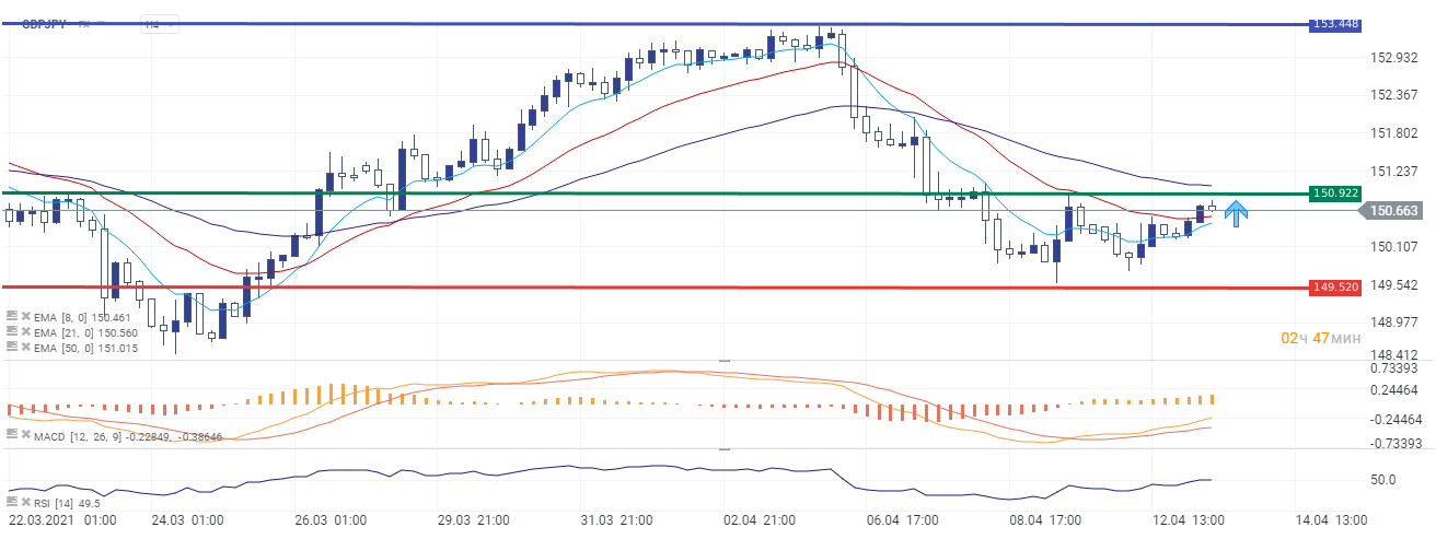По состоянию на утро, ценовая отметка инструмента находится в диапазоне 150,62-150,81. Рассматриваем покупки, рекомендуемый риск на сделку 0.5% - 1%. Вход в рынок после пробития уровня сформировавшегося сопротивления с последующей фиксацией над ним.