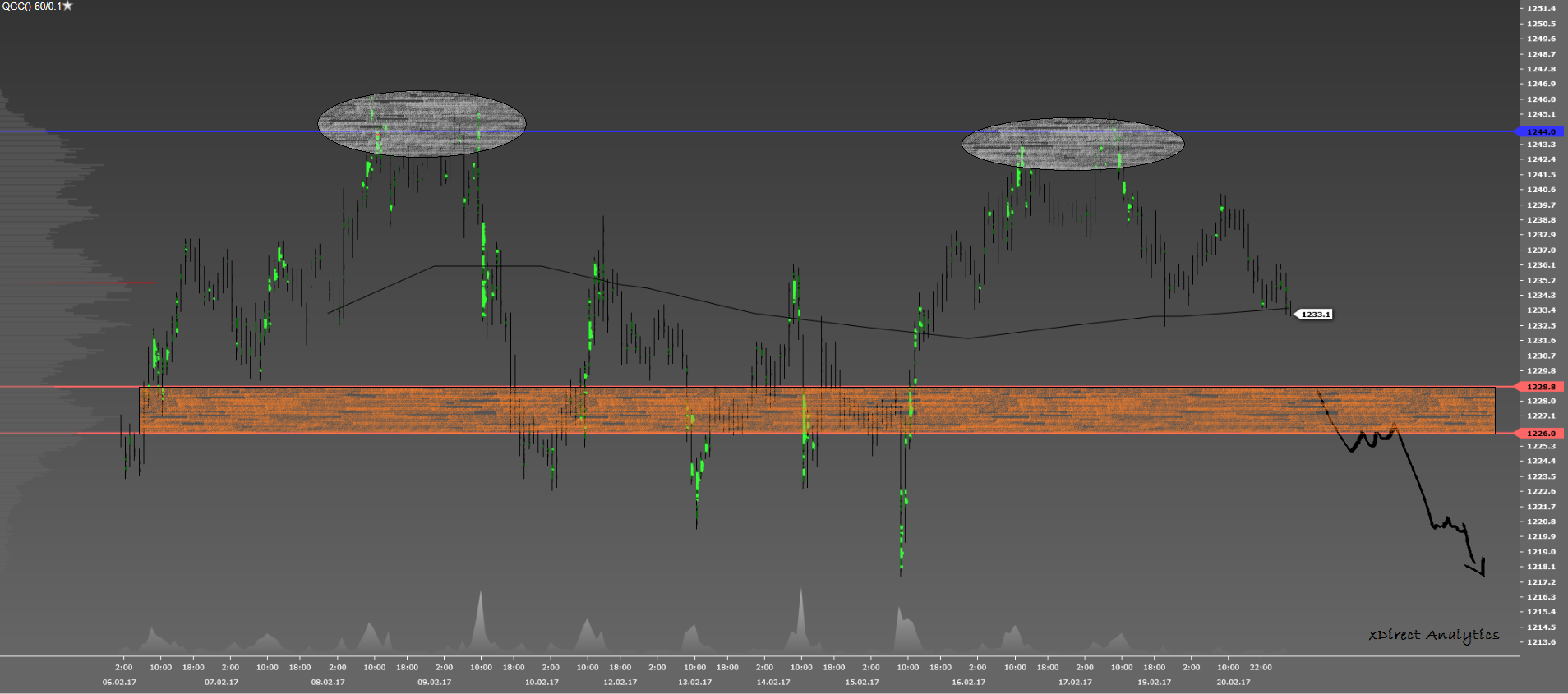Предлагаем вашему вниманию кластерный чарт фьючерса на золото (ТФ Н1):