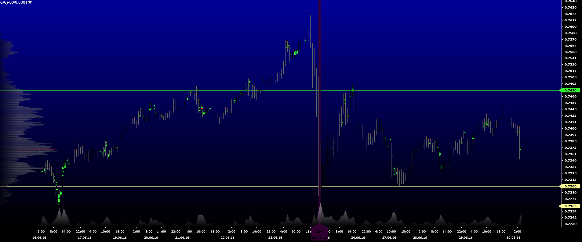 Кластерный чарт AUD/USD (таймфрейм H1)
