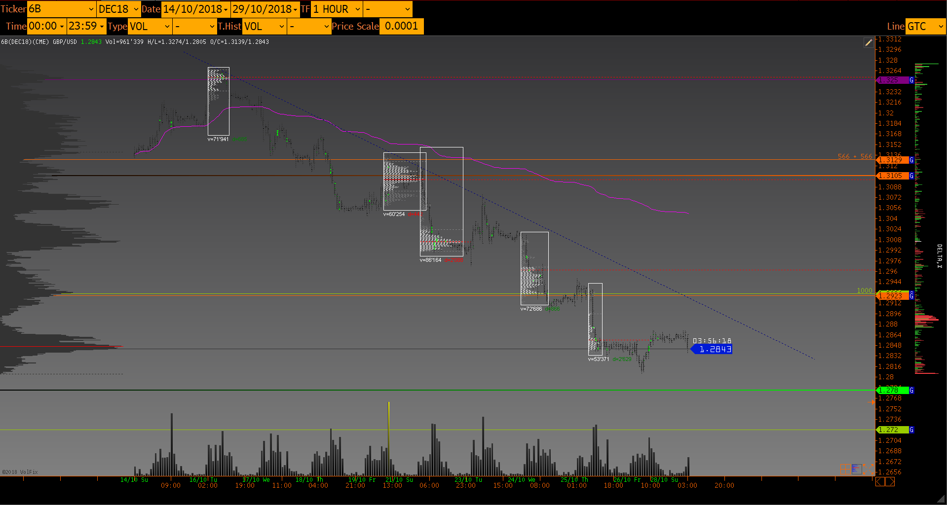 Объемный анализ фьючерса 6BZ8 GBP/USD 29/10