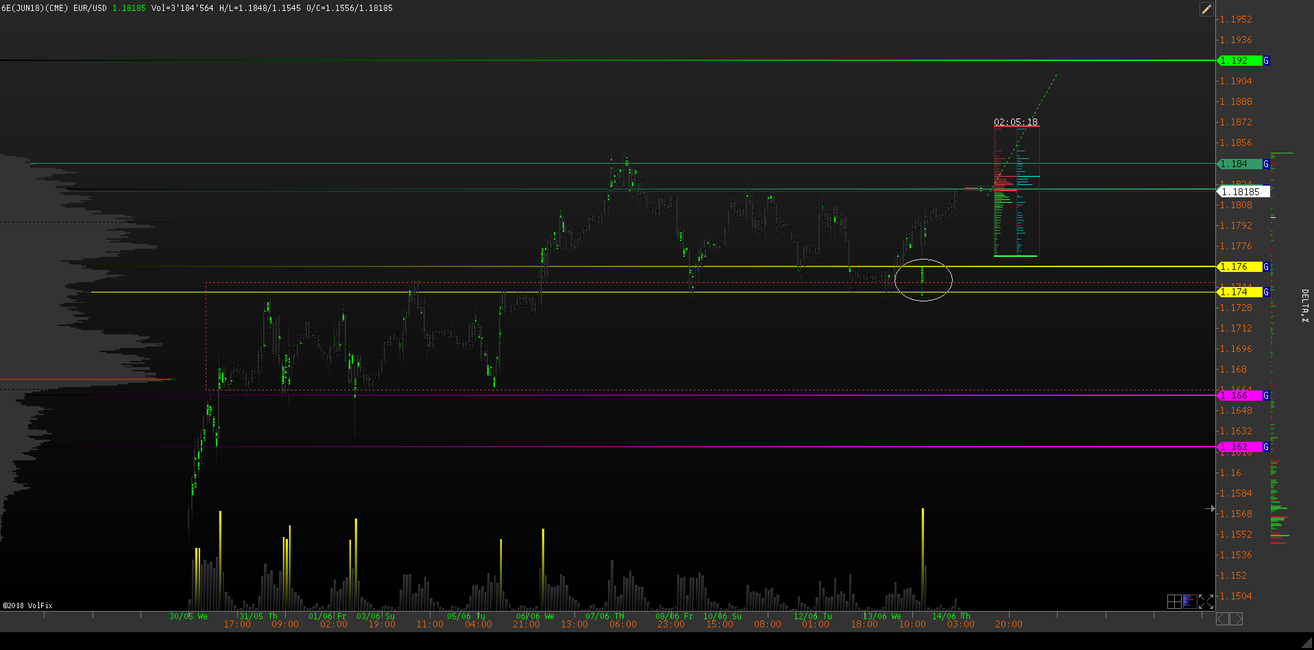Объемный анализ фьючерса 6EM8 EUR/USD 14/06