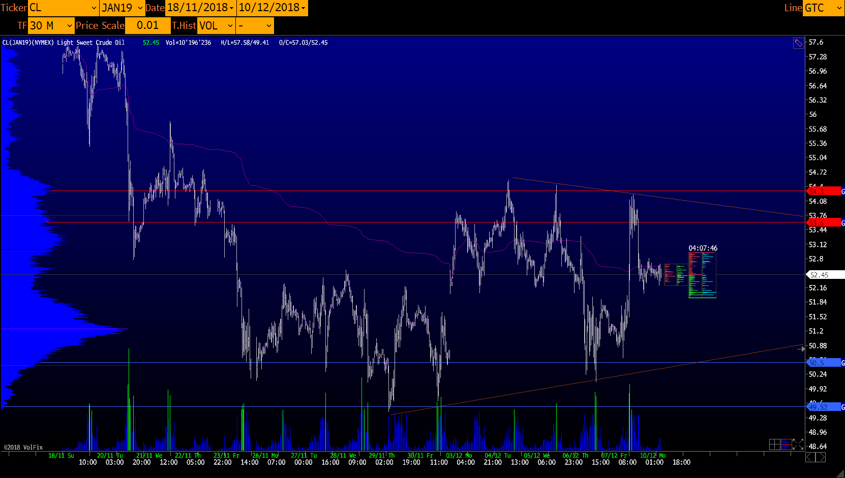 Объемный анализ фьючерса CLF8 OIL.WTI 10/12