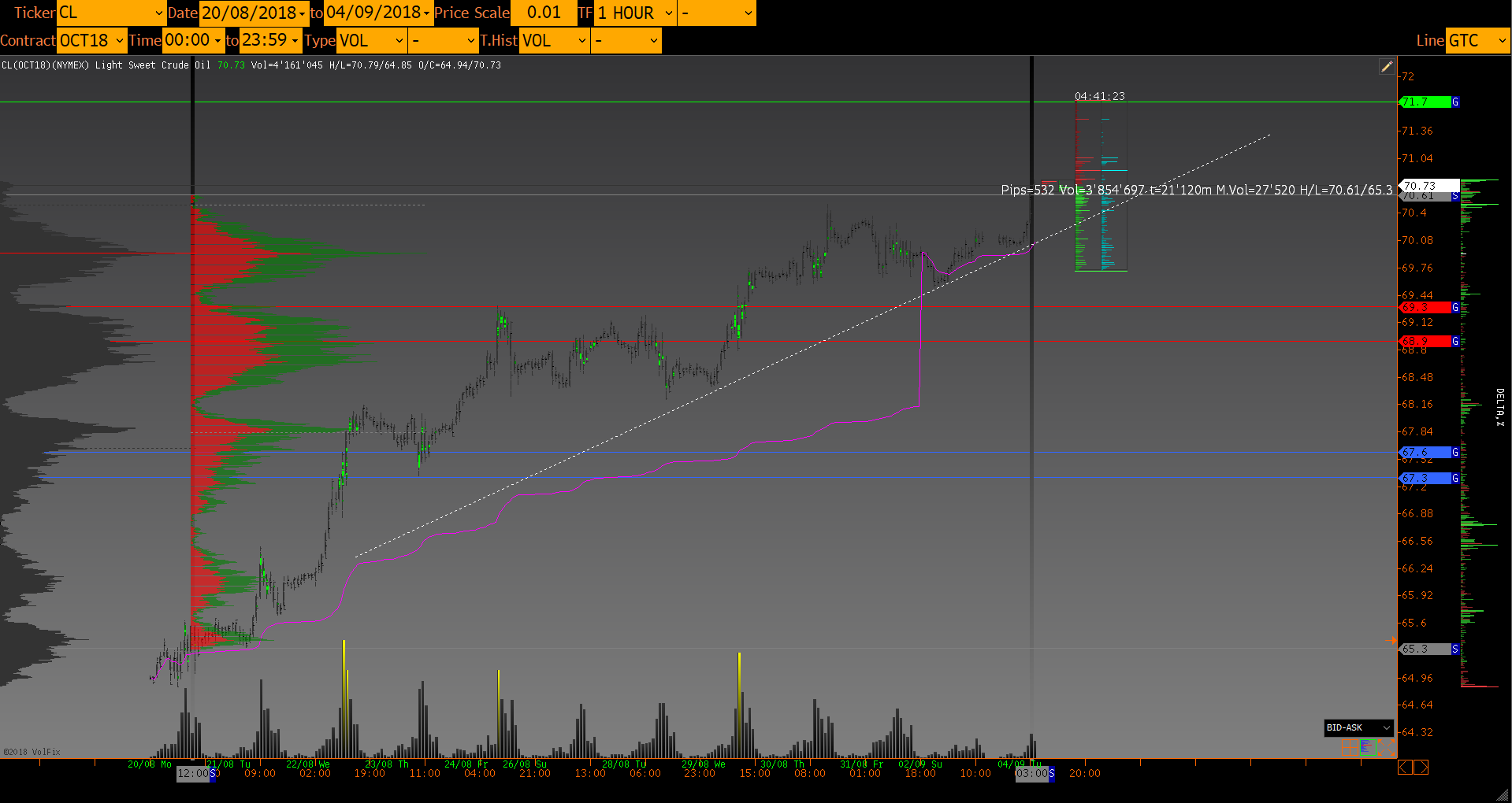 Объемный анализ фьючерса CLV8 нефть WTI 04/09