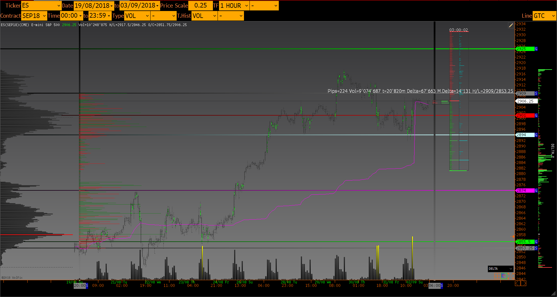Объемный анализ фьючерса ESU8 S&P500 03/09