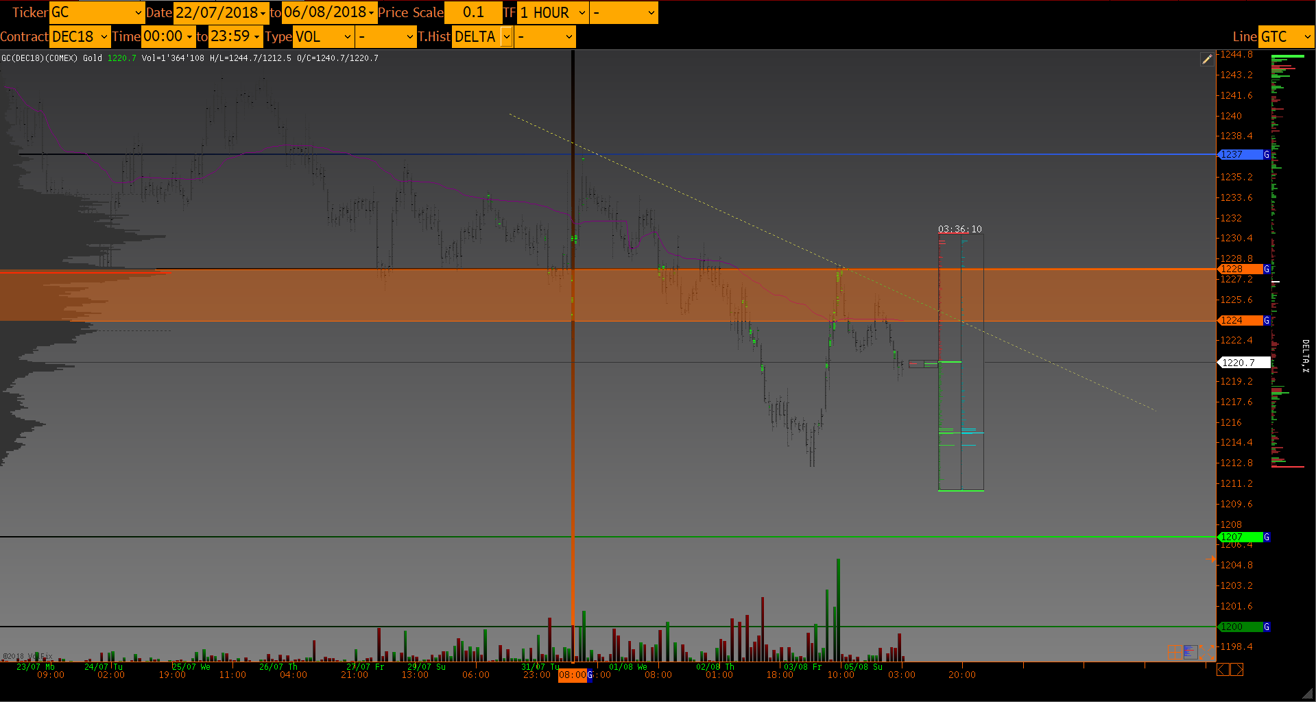 Объемный анализ фьючерса GCZ8 GOLD 06/08