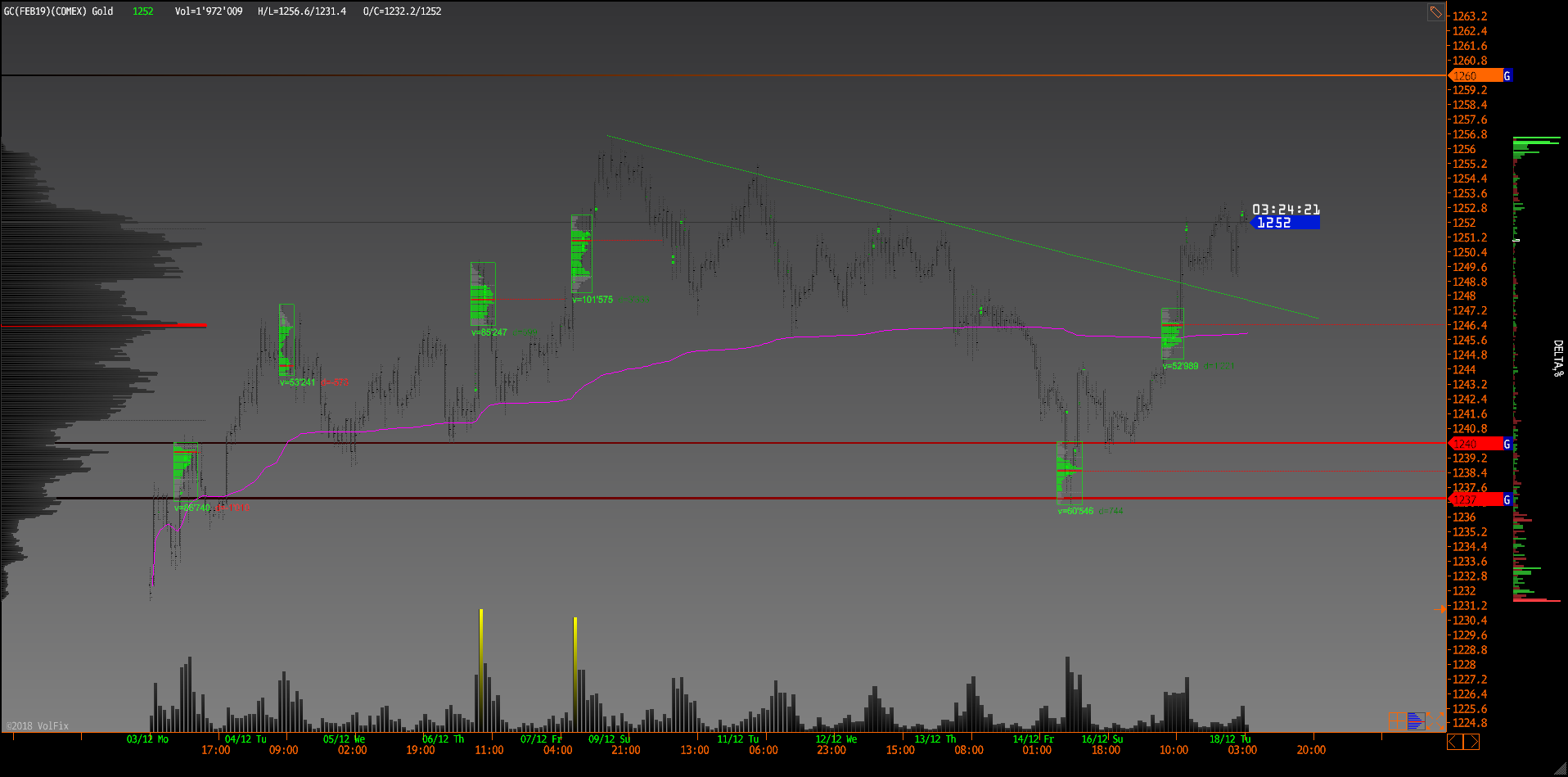 Объемный анализ фьючерса на золото GCG9 GOLD 18/12