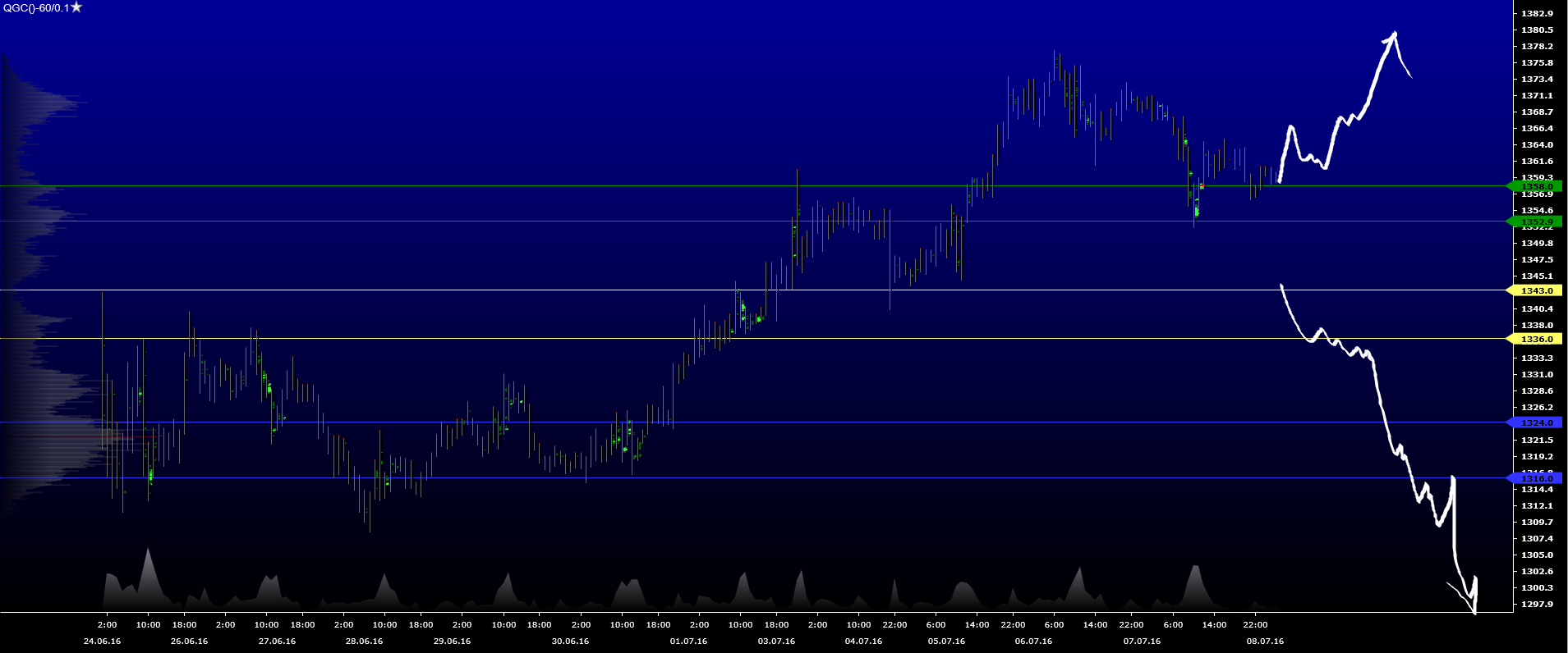Стоит также учитывать, что пробой вниз уровня 1343,0 – 1336,0 отменит сценарий восходящего тренда и мы получим возможность для открытия коротких позиций.
