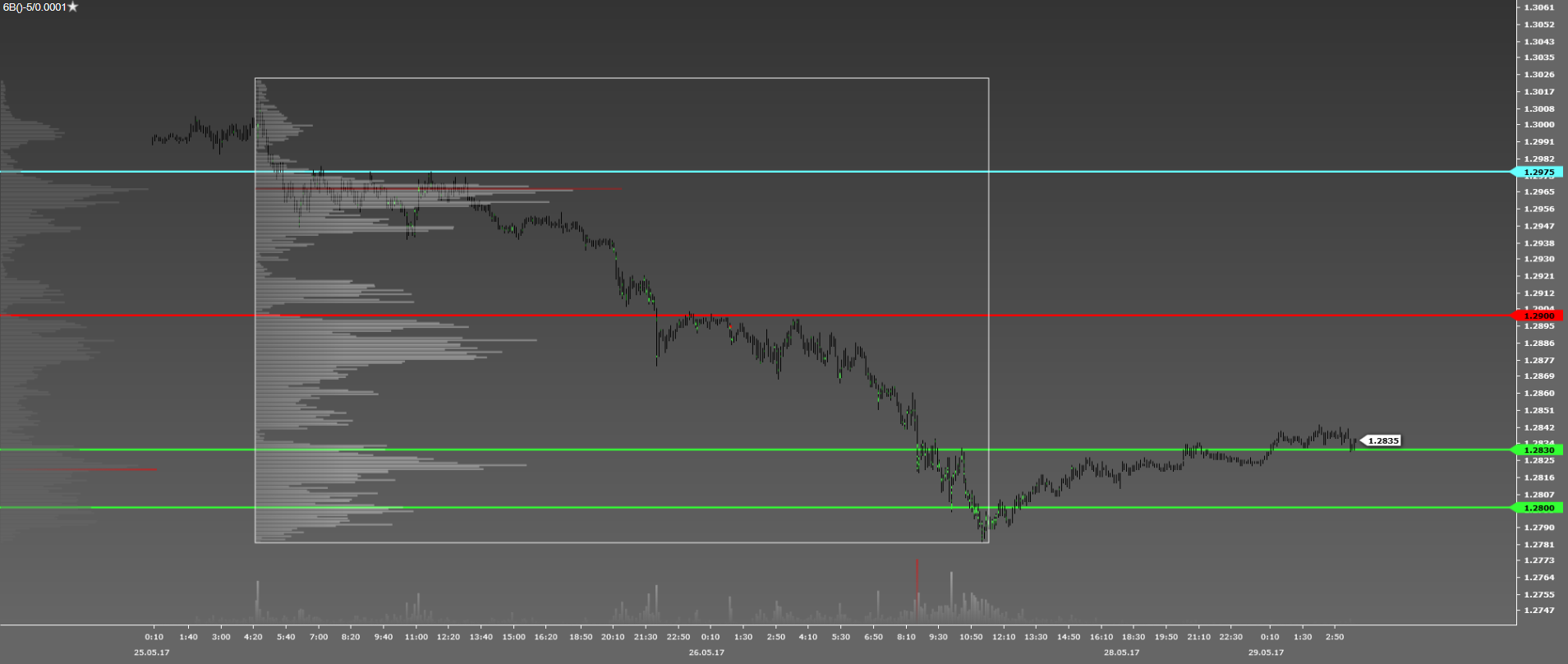 В конце прошлой недели фунт неплохо скорректировался вниз, тем самым сформировав локальный нисходящий тренд. Ключевые уровни сопротивления продавцов — это отметка 1,2975 и 1,2900. При этом ключевая поддержка – 1,2830 – 1,2800. Стоит отметить значительный всплеск объемов на минимуме чарта в пятницу. Это может говорить о закрытии краткосрочных продаж и фиксации прибыли перед выходными. В таком случае нас ждет восстановление утраченных позиций инструмента. Торговый план – работаем от продаж при пробое поддержки вниз; альтернативный сценарий – покупаем в случае выхода цены выше сопротивление 1,2900.